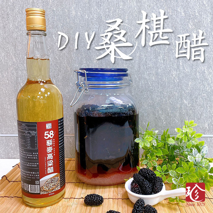 倒入58藜麥高粱醋(需蓋過桑椹),放置通風陰涼處三個月以上就能開喝囉!